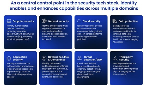 Identity now serves as the connective tissue across the security ecosystem, touching every domain from endpoint protection to cloud security.